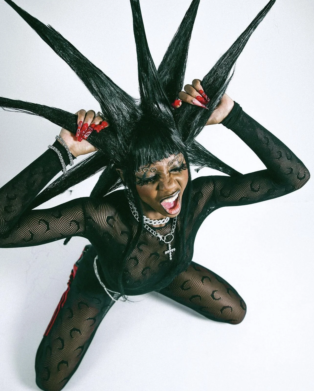 The hairstyle I chose was symbolic of my mindset at the time, perfectly embodying the "dark/punk" vibe I wanted to highlight. I played with the transparency of my outfit to add subtlety to the look without overwhelming its sex appeal. The nail design was entirely my own creation, and I personally selected the accessories — details that, in my opinion, made all the difference.